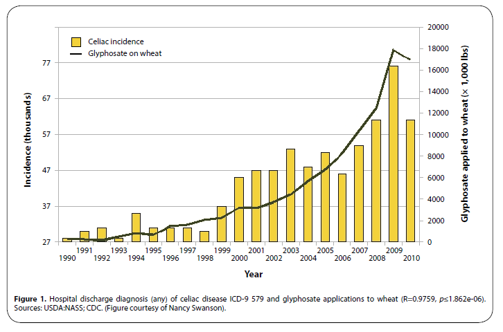 Ref.: "Glyphosate, pathways to modern diseases II: Celiac sprue and gluten intolerance". Af Anthony SAMSEL and Stephanie SENEFF . 2013